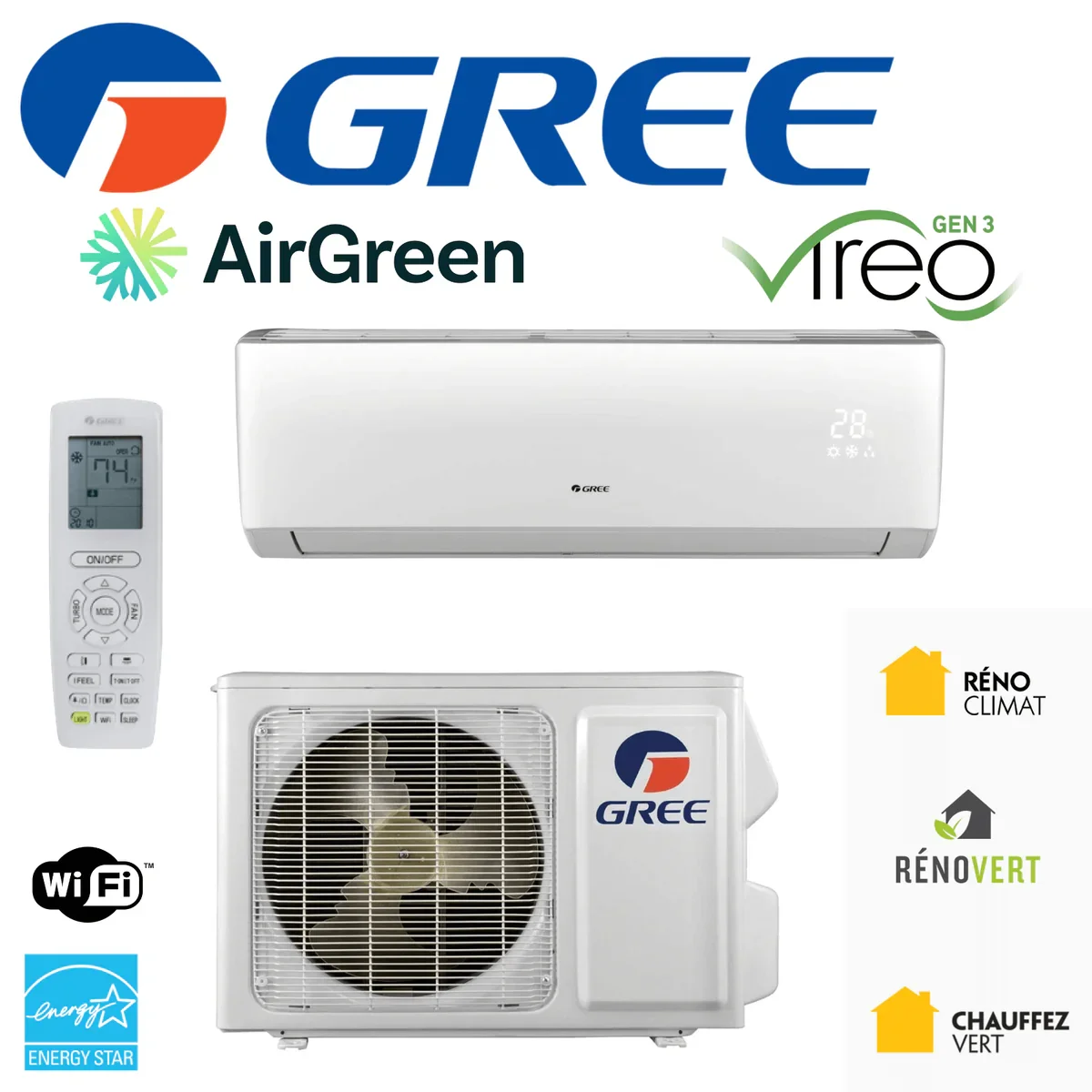 The Gree Vireo+ 18,000 BTU mini split is one of the most widely available and best-rated ductless systems in Canada. Designed for year-round performance, it delivers both efficient cooling in summer and powerful heating even when temperatures drop to −20 °C. Its 21 SEER energy-efficiency rating helps reduce utility costs, while the quiet operation and sleek indoor unit make it an excellent choice for homeowners looking for both comfort and style.